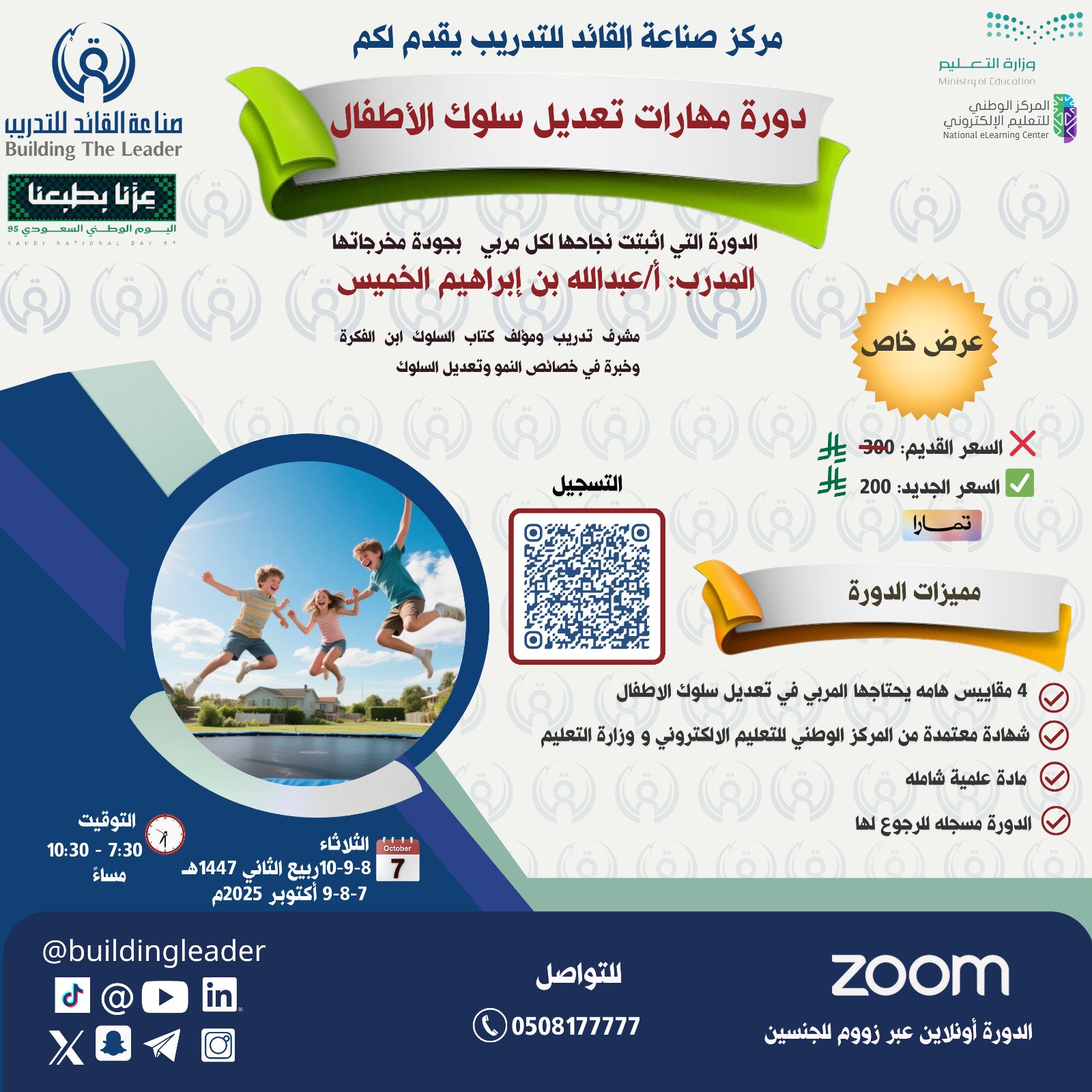 أن يكتسب المتدربين مهارات استخدام أفضل الأساليب السلوكية في تعديل المشاكل السلوكية لدى الأطفال.